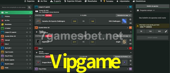 O Vipgame oferece uma grande seleção de opções de apostas em e-sports com probabilidades competitivas